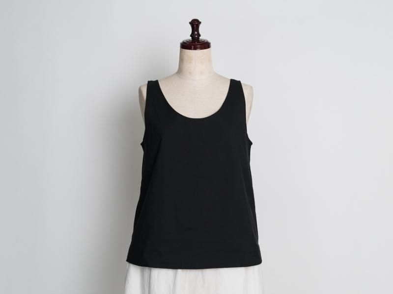 タンクトップというと伸縮性のあるニット素材が主流ですが、こちらは布帛(織物)の素材でできています。