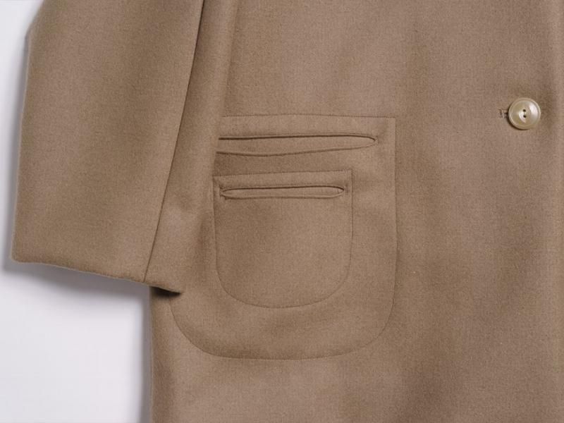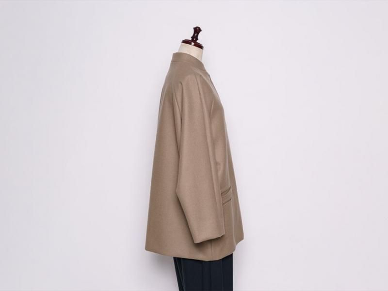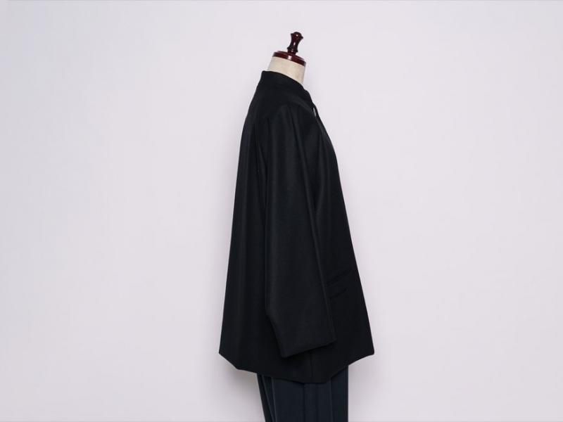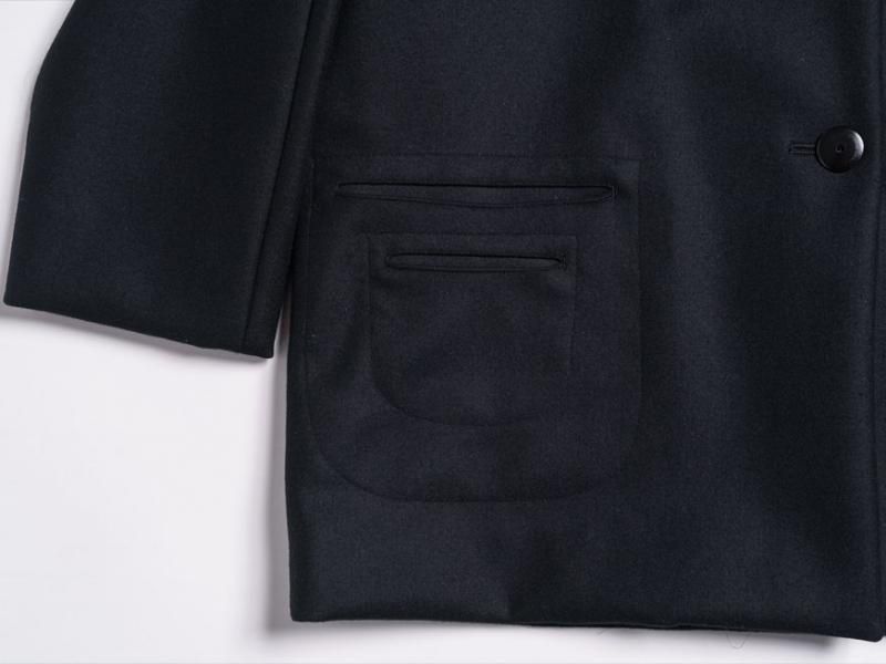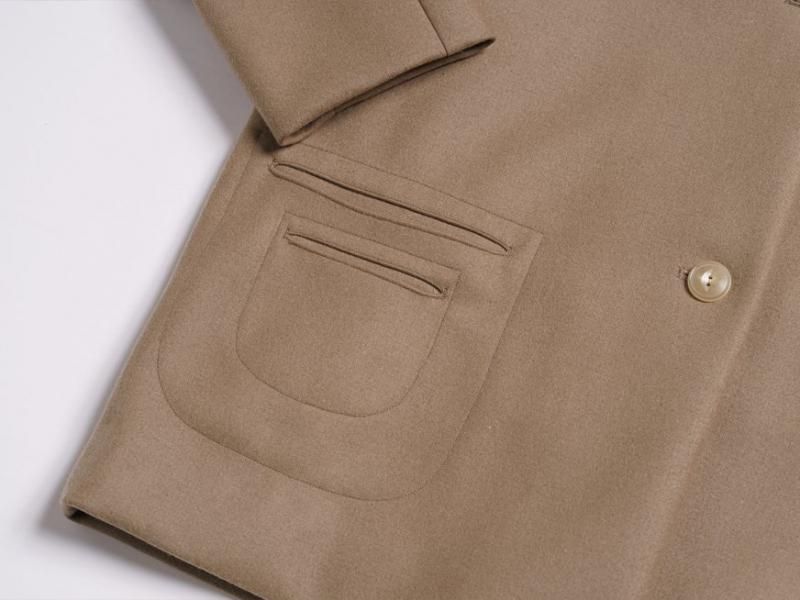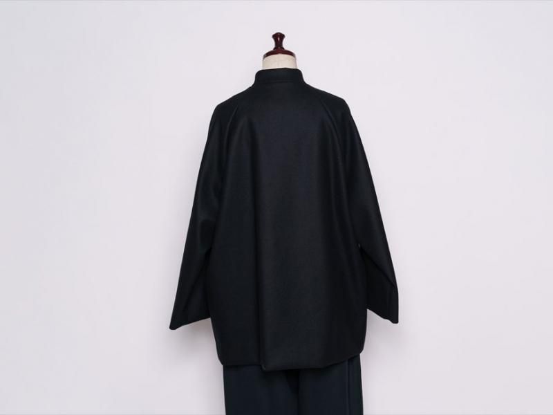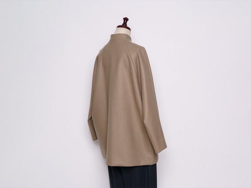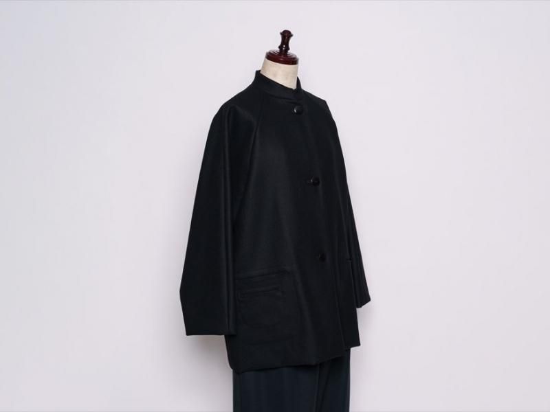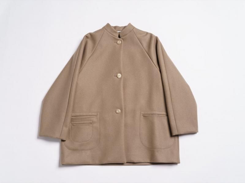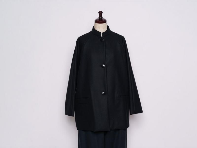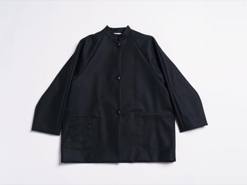 カジュアルなデザインのこちらのコート。スタンドカラーでキリッと甘さ控えめな印象なのですが、実際に袖を通すと、細糸で織られた少し張りのあるメルトン生地と、ラグラン袖の組み合わせなので、丸みを帯びたシルエットが生まれ、柔らかな印象になります。