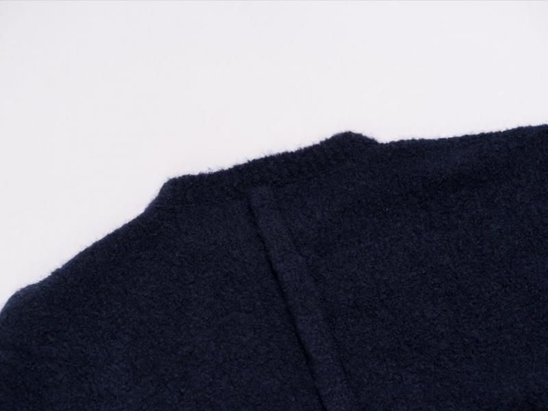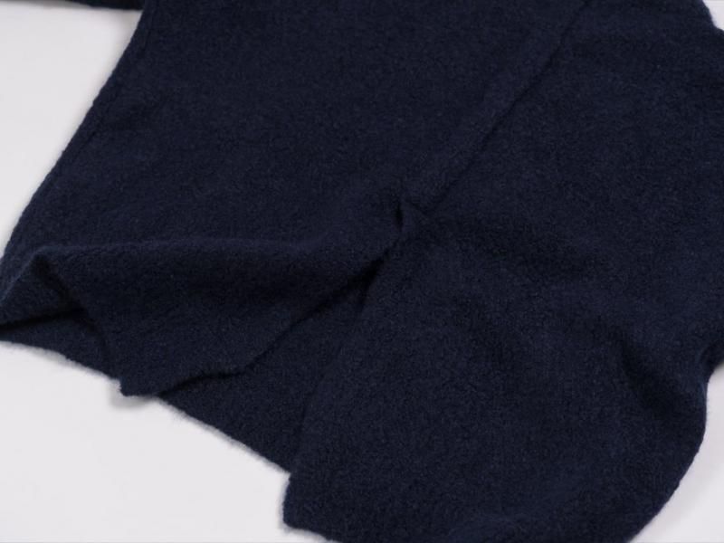 こちらのプルオーバーニットはループ状(BOUCLE)の毛糸を用いて編まれており、まるでテディーベアのようなモコモコとした表情をしています。カシミヤとシルクの混紡の糸は、カシミヤの柔らかさに加え、シルクの滑らかな手触りが心地良く、それぞれの素材の良さが生かされています。