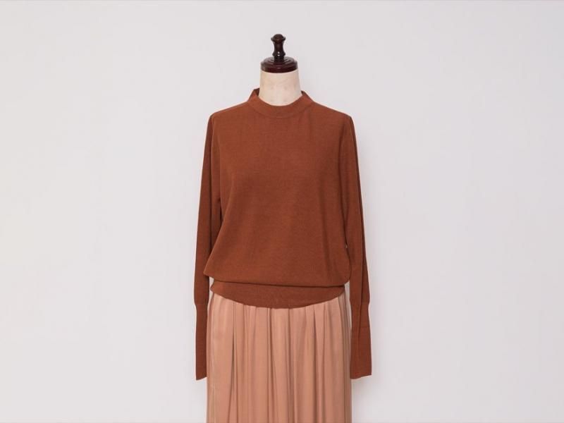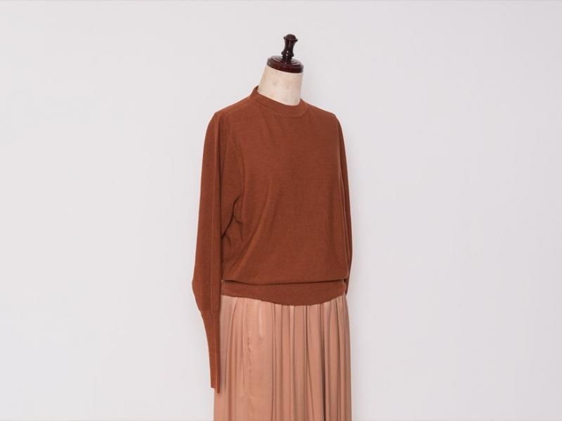 少し立ち上がった襟の形、ゆったりとした首周り、袖口の長めのリブでスッキリと見える手元…。そんなこちらのcrewneck knitは、humoresqueでブラッシュアップしながら長年作り続けている形なのだそうです。