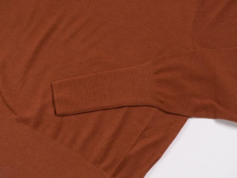イタリアの紡績メーカーCARIGGI社の祖網(そもう)カシミアにシルクをブレンドした糸で作られており、カシミヤの柔らかさとほんのりとしたシルクの光沢が感じられる上品なニットです。