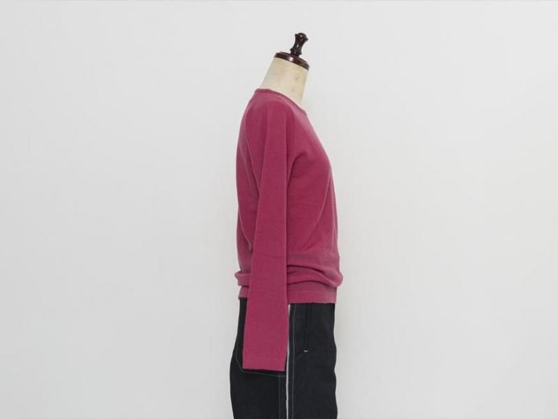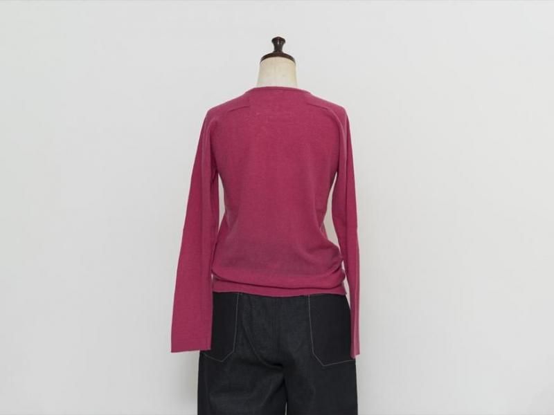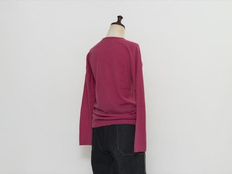 細糸で編まれたこちらのセーターは、薄手で軽くまるでTシャツのような感覚で気軽に着られます。