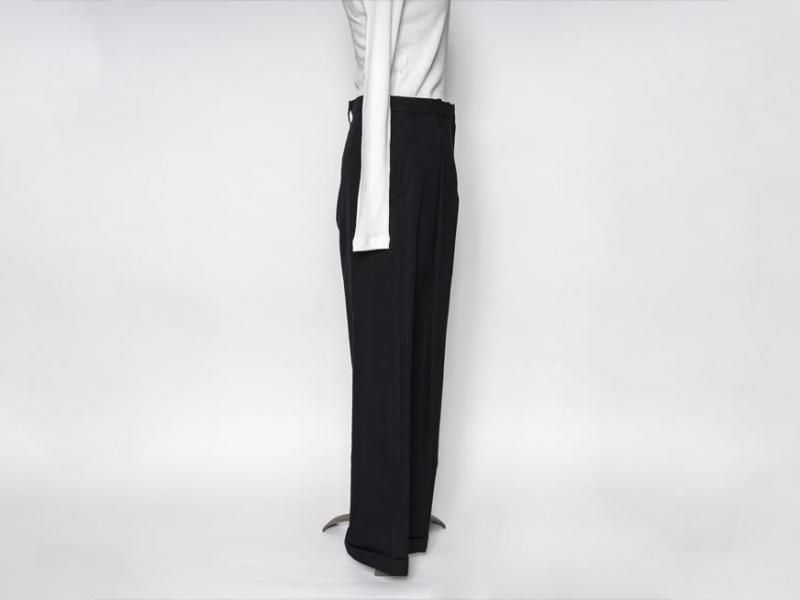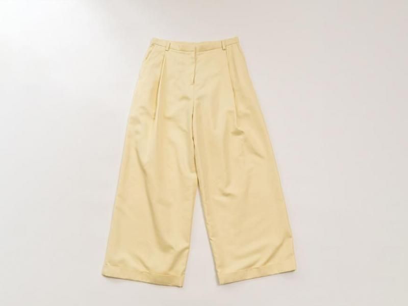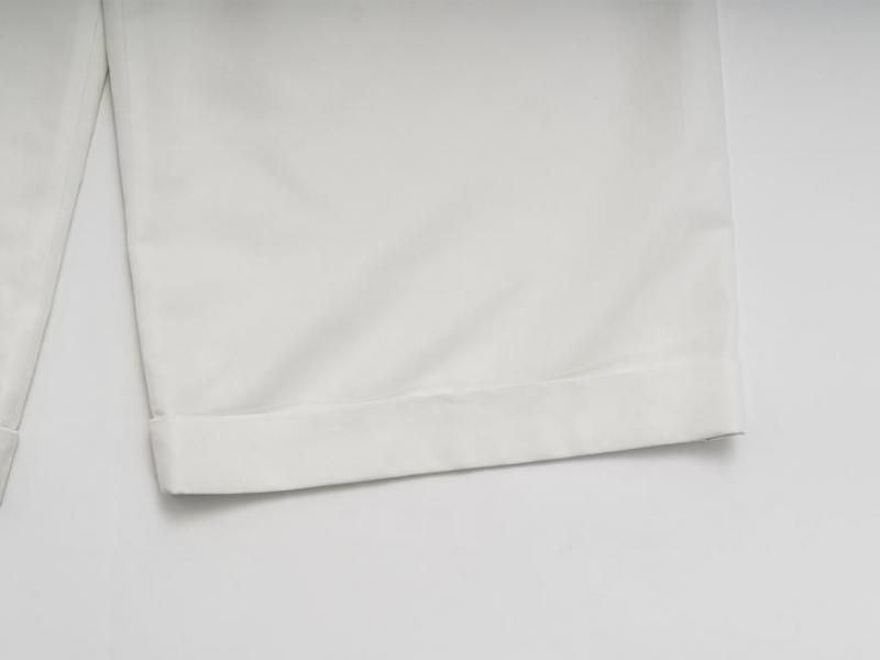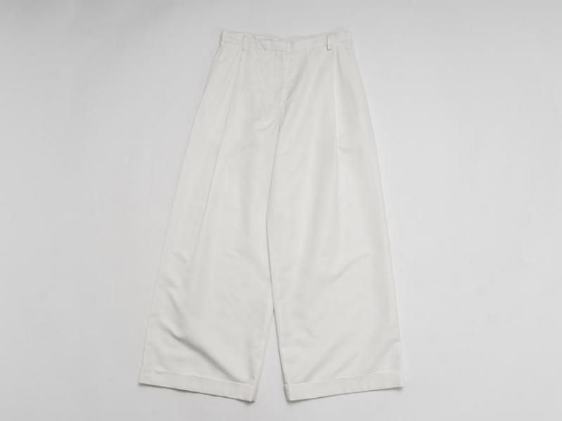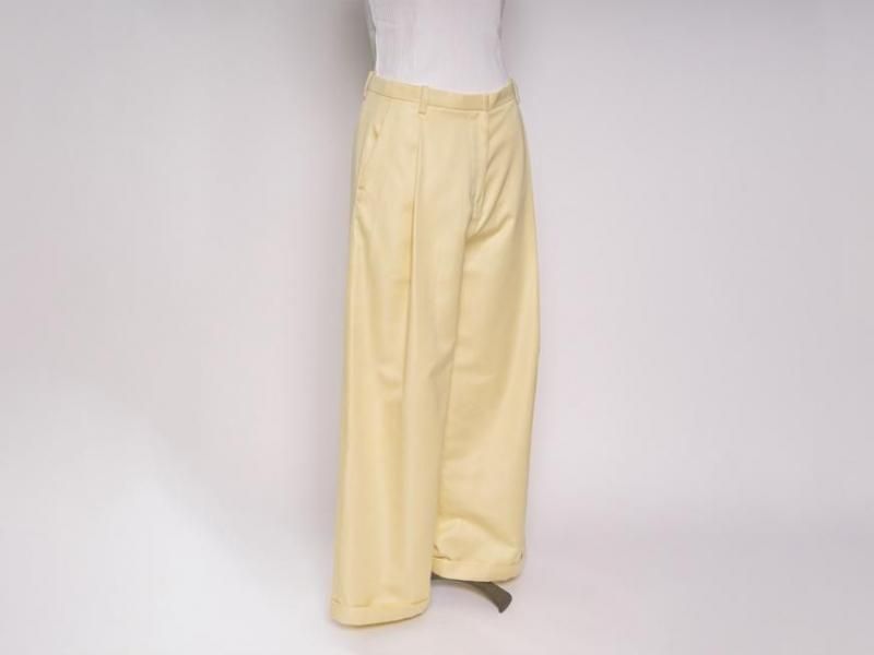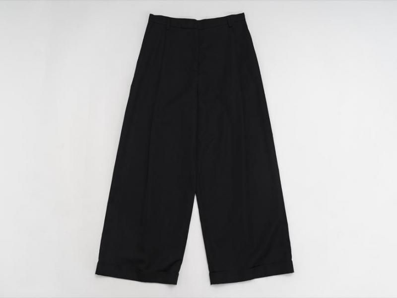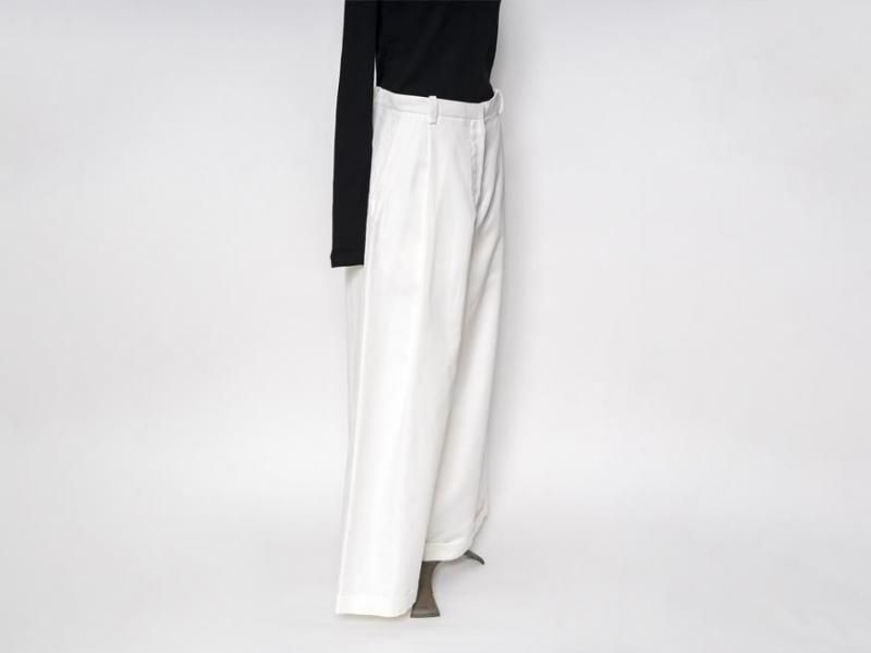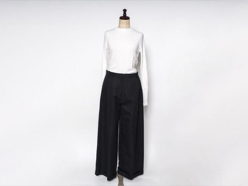 センタープリーツに裾は1ロール折り返し、ラグジュアリーさの中にちょっぴりのカジュアルさをミックスした、組み合わせるアイテム次第で雰囲気を変えて楽しむことができそうな1本です。