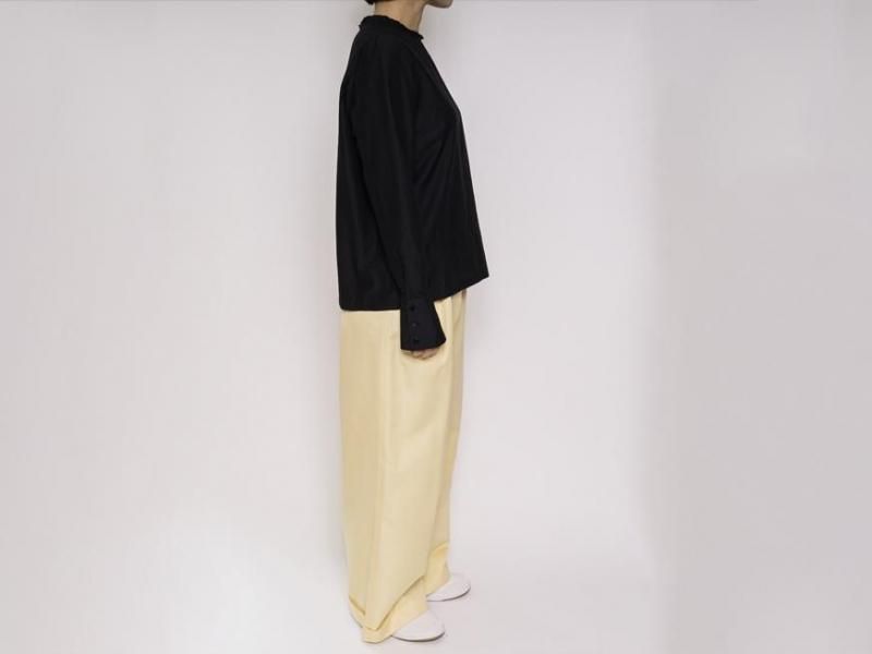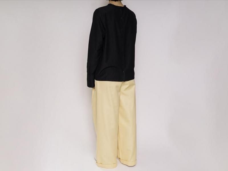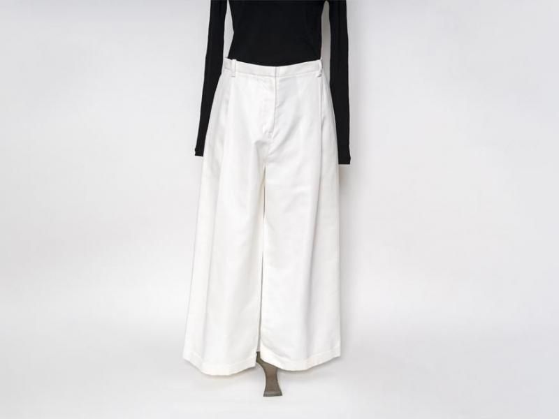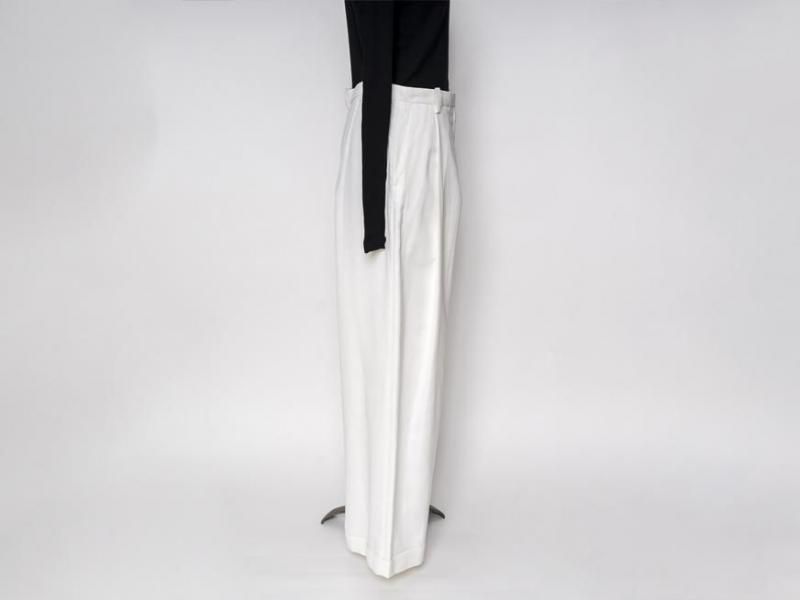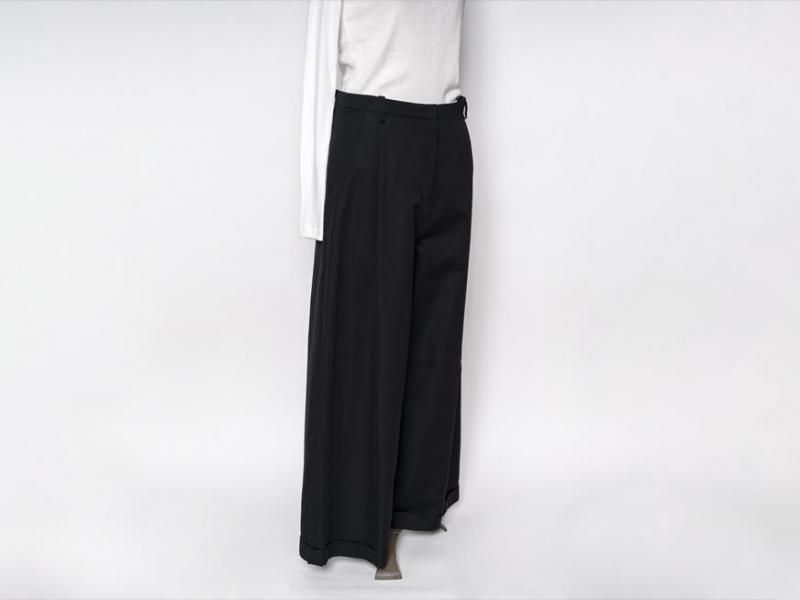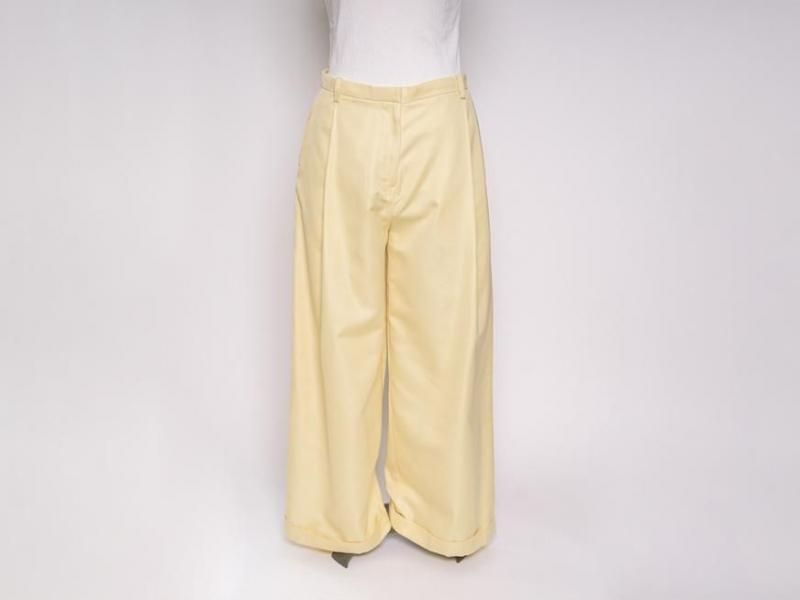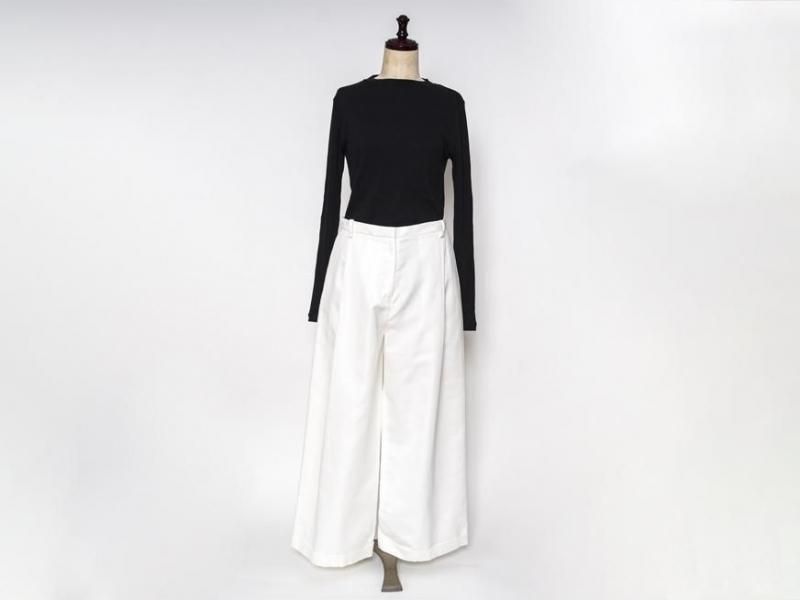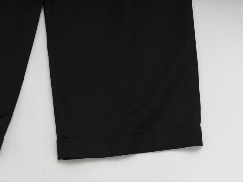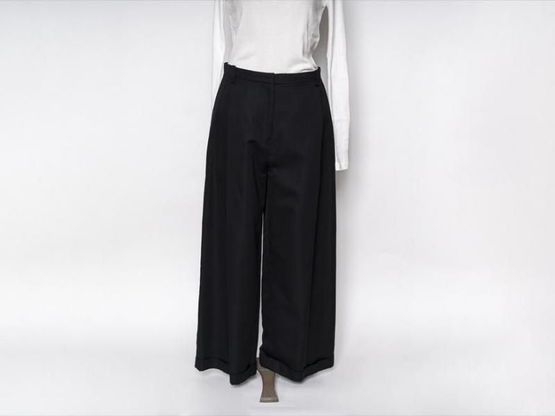 センタープリーツに裾は1ロール折り返し、ラグジュアリーさの中にちょっぴりのカジュアルさをミックスした、組み合わせるアイテム次第で雰囲気を変えて楽しむことができそうな1本です。