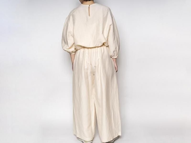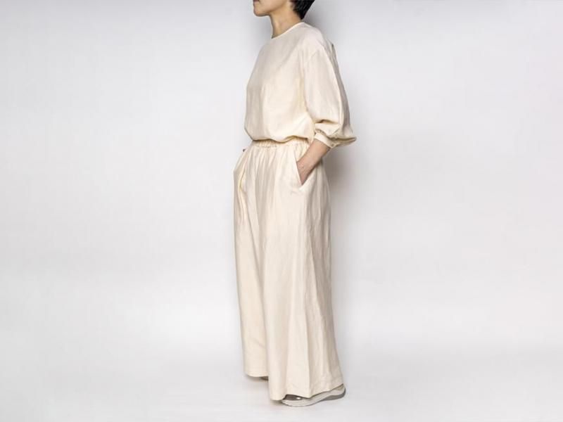ユーモレスクではこれまでもさまざまな生地を使って作り続けているculottesですが、2025年の秋冬は、柔らかくふくらみのあるシルクリネン生地にて登場です。