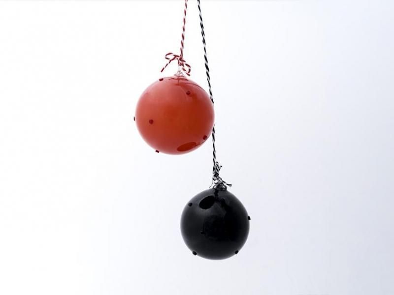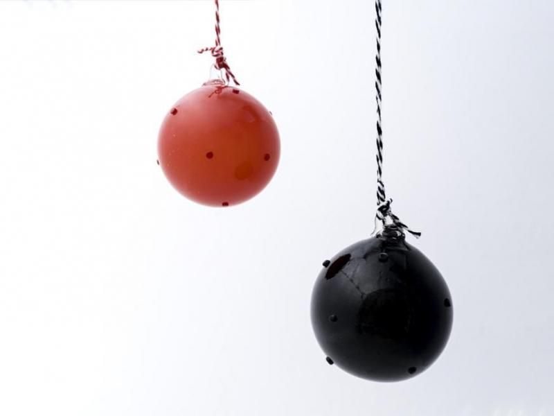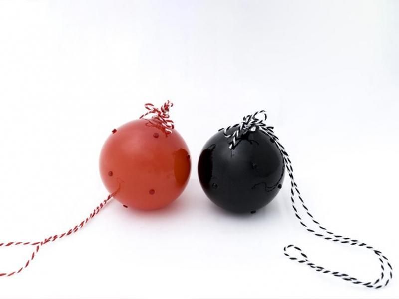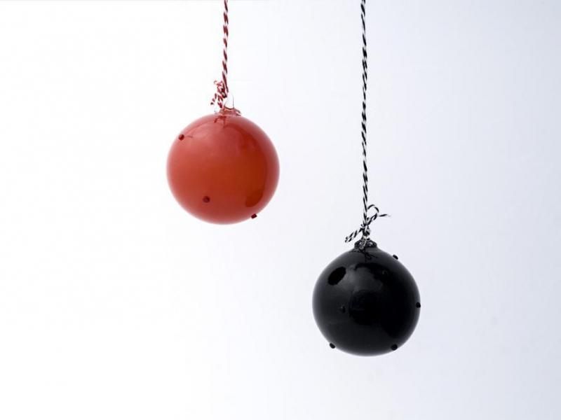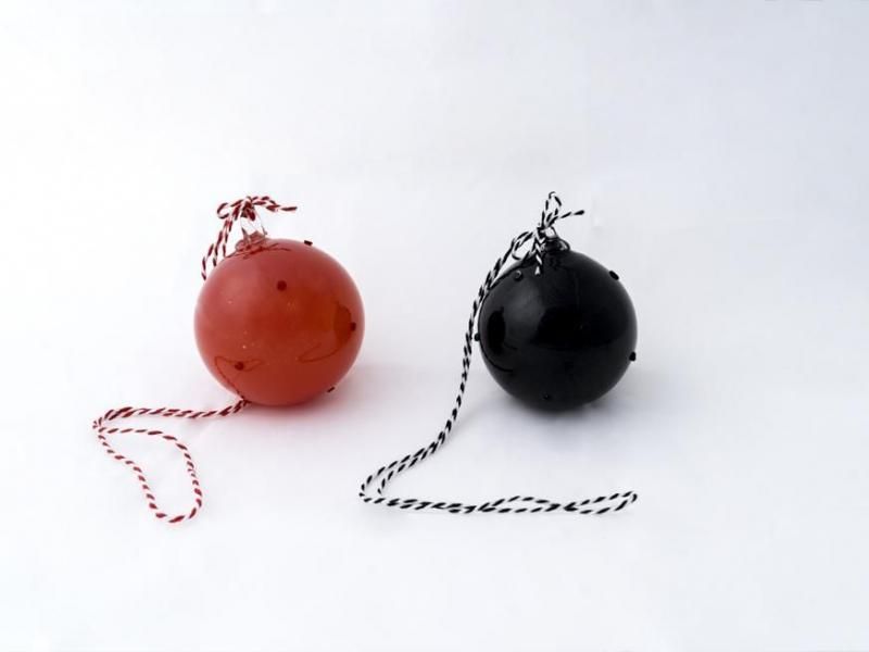 今年はキリッとシックな雰囲気の赤と黒のクリスマスボールです。